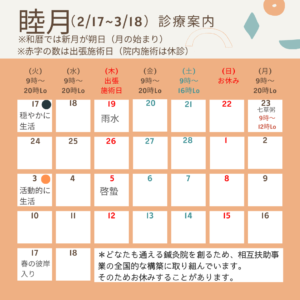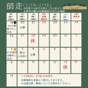 師走、睦月(1/19〜3/18)の診療案内